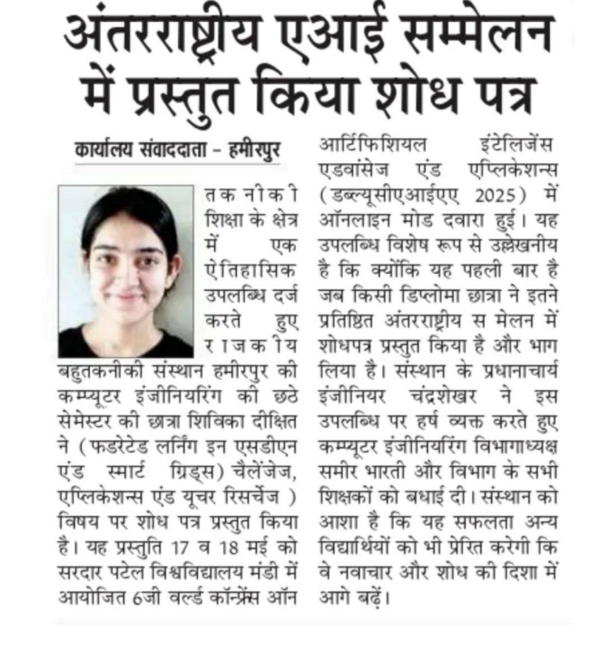 Student of Government Polytechnic Hamirpur won the First Prize in declamation contest of Fundamental duties of citizen of India organized by NITTTR Chandigarh.